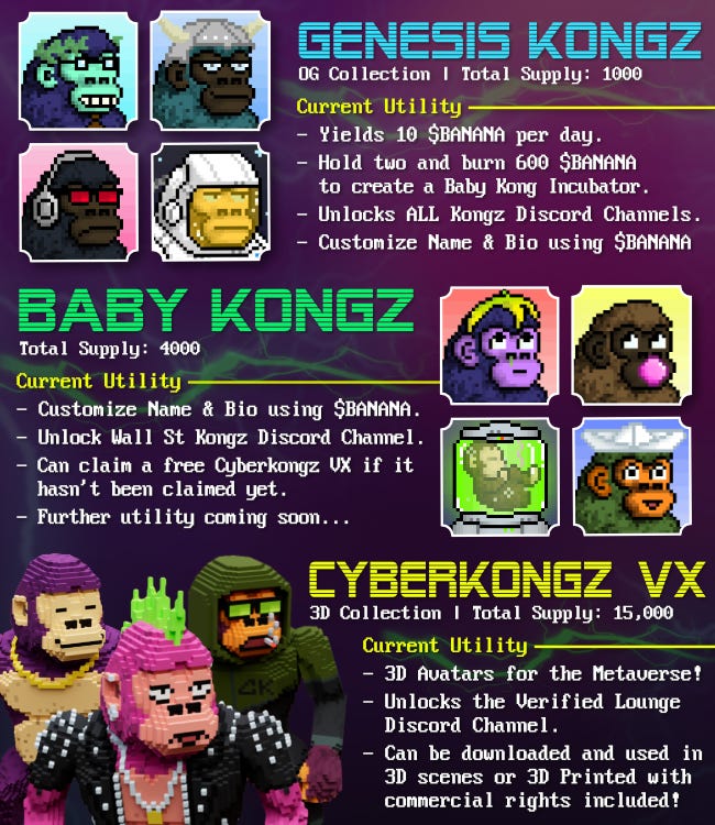 The $BANANA token seen in the utility image above is used for everything in the CyberKongz Universe.